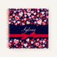 A unique and elegant very dark blue black with red, pink and white hearts and a red ribbon with a bow notebook. Customise with your own choice of name. This notebook currently reads Sylvia. © An original graphic hearts design by Sarah Trett. www.mylittleeden.com