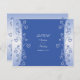 The text on this romantic royal blue and white wedding response or reply card is framed by hearts and scrolls and is fully customisable. To change the text, use the personalise it options. For more extensive changes to the text, including changing the font, font colour, font size, or text placement, use the customise it option. Although currently customised for a wedding, this card would work well for a special anniversary party. All you need to do is change the text. Also, you could change the text and use this card as a reception, direction, and/or accommodation card. Again, all you need to do is change the text.