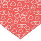 Table runner to accent your table decor is shown in a red and white hearts print.