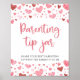 Add a touch of heartfelt wisdom to the celebration with our Valentine Parenting Tip Jar Advice Sign. Embrace the spirit of love and guidance as guests share their treasured parenting tips. This charming activity invites loved ones to contribute heartfelt advice, written on Valentine-themed cards, to support and encourage the parents-to-be on their journey. Let this keepsake be a source of wisdom and affection, a beautiful gift for the growing family to cherish as they step into this new chapter of love and parenthood.