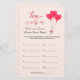 Watercolor Heart balloons "Love is in the air" Where Were They, Bridal shower game. Personalise the back of the card with name of the couple and shower date.