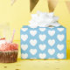 A wrapping paper with white hearts on a light blue background. You can choose the background colour of your preference.