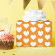 A wrapping paper with white hearts on an orange background. Customise the background colour among other options.