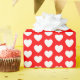 A wrapping paper with white hearts on a red background. You can choose the background colour of your preference.