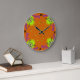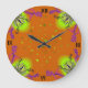 Hearts with Flowers and Butterfly in Tattoo Style Large Clock