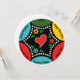 "Hearty Portuguese Christmas" illustration—a circle adorned with flowers, foliage, and playful semi-circles, in vibrant and joyous hues, round like a Christmas ball or bauble. This motif pays homage to the cherished Portuguese Rooster, infusing the festive season with its unique charm.