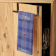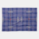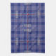 We call the original design by HomeWare on this Kitchen Towel “Mad Plaid in Blue”. The pattern is a basic plaid in shades of heather blue. Over this background are two wavy red lines, one horizontal and one vertical, which cross through the centre of the design. The lines are three dimensional, throwing shadows on the plaid, and there is a round red button in the centre, where the lines intersect. Over the far ends of the red lines, on four sides, there are blocks of textured, wavy white lines. There are also red dotted lines running through the lighter blue part of the plaid. It looks a bit like a package, all sealed and taped. Thus the name "Mad Plaid in Blue".
