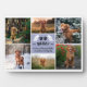 Honour your beloved dog who's passed away with this dog memorial plaque personalised with a photo collage of six photos, with paw prints and angel wings, their name and years living, and a quote or personal text in black fonts against a heather purple background.