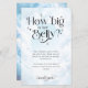 Add some fun to your baby shower with this 'How Big is Her Belly?' game card from the Heaven Sent collection. Featuring a dreamy blue sky and clouds background, this card invites guests to guess the size of the mummy-to-be's belly by cutting a ribbon to the length they think will fit. The person with the closest guess wins a prize! Perfect for a celestial-themed baby shower, this game card is both charming and interactive, creating unforgettable memories with friends and family