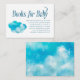 Dreamy heaven sent theme baby shower book request card featuring watercolor illustration of blue cloud. The card asks guests to bring in a new or used children's book instead of a card.