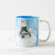 Heavenly Bliss: Grey and White Bunny on Cloud with Two-Tone Coffee Mug