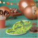 Pretty multicolored heavenly dragonflies flit on a vibrant lime splashed starry sky.
