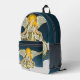 The angel features a serene expression with delicate, flowing golden hair, embodying grace and tranquillity. The use of gold and soft yellows gives the angel a luminous, almost divine quality, highlighting its otherworldly presence. The detailed and expansive wings add a sense of grandeur and protection, emphasizing the angel's role as a guardian. The elegant, flowing robes add movement to the design, creating a dynamic and lifelike appearance. The angel is set against a backdrop of clouds and stars, enhancing the celestial theme and adding depth to the composition. The overall demeanour and gentle posture of the angel symbolise peace, comfort, and protection, making it a calming and uplifting image.