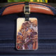 I was happy with the acrylic tag but it came with a thin leather strap to attach the tag to luggage (like a cat collar). I replaced the strap with a metal ring off of a key ring as the leather strap would come undone or break easily as luggage is sometimes handled without much care by airlines. Printing is great. Colours and positioning of the design I put on the tag were perfect. Very pleased.