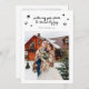Whimsical and elegant religious theme holiday card for the newlyweds announcing their wedding featuring a text that says "wishing you peace & heavenly joy" on top of the couple's photo. The text is a hand written script font. The background is white.