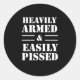 Heavily Armed & Easily Pissed Classic Round Sticker