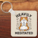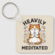 Funny Yoga Cat meditating keychain with the slogan "Heavily Meditated"