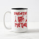 Eat, sleep breathe metal! Red and white graphic of funny Internet cat with two classic metal guitars. Introverted heavy metal cat lovers will adore this purrfect gift.