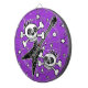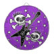 Rock and roll skulls and crossbones with mohawks and guitar surrounded by stars.