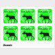 Cute black silohuette of a moose against a bright green background and encircled in a vintage style circle. The words, "Yom Huledet Sameach" (Happy Birthday in Hebrew) match the black silohuette.