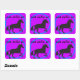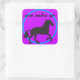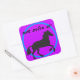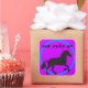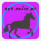 Cute black silohuette of a horse against a purple background and encircled in a light blue circle. The words, "Yom Huledet Sameach" (Happy Birthday in Hebrew) match the black silohuette.