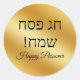 hebrew happy Passover , gold metallic minimalist Classic Round Sticker
