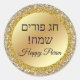 hebrew happy purim, gold metallic glitters classic round sticker