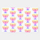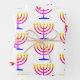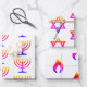 Holiday gift wrap with a Hebrew inspired theme of the Menorah, the Star of David, and the flame. Background colour can be changed and selected by editing the image. HAMbyWhiteGlove. Shown with a white background and rainbow graphics.