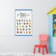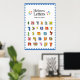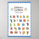 This great poster will look wonderful on the wall of the kids' room or a classroom! The text on top reads Hebrew Letters in English and Ha'alef Beit Ha'ivri in Hebrew. The body of the poster features the entire Hebrew alphabet with colourful cheerful patterns.