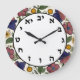 Floral Hebrew Number Clock with classic traditional Armenian floral flower pattern, for Jewish homes and families, or for fans of Hebrew letters and the original Bible's biblical language.