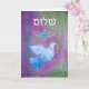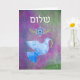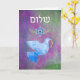 A dove in watercolor washes with an olive branch is centred under Shalom written in Hebrew and the Star of David with olive branches on each side. Pesach, Passover paper greeting card. Customise the interior verse as you like. Art, image, and verse copyright © Shoaff Ballanger Studios, 2023.