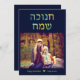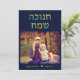חנוכה שמח, Hebrew for Happy Hanukkah, features in blue, gold and green watercolor at the top of this colourful family card, with space for your favourite photo and message on the bottom. Add a message on the back or leave blank.