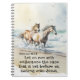 Inspirational quote Christian scripture notebook, journal depicts a beautiful nature watercolor with horses running on the ocean beach. It features a portion of an encouraging Bible Verse Hebrews 12 1-2, "Let us run with endurance the race that is set before us, looking unto Jesus."