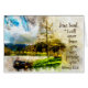 Beautiful inspirational quote artistic custom greeting card depicts a boat in a lake surrounded by nature and features Bible Verse Hebrews 13:5 in the words of Jesus, I will never leave you nor forsake you. The inside prayer can be modified to the greeting of your choice._