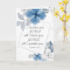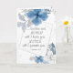 Inspirational scripture greeting card depicts a simple floral watercolor design with a modern double frame adorned with blue and grey flowers and leaves. It features Bible Verse Hebrews 13:5, ... God has said, "Never will I leave you, Never will I forsake you."