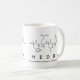 Hedda spelled out in amino acids as H E D D A (Histidine Glutamic acid Aspartic acid Aspartic acid Alanine) on a mug for the scientist in you.