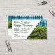 A striking business card featuring a green hedge against a blue fence. This great card would work well for a hedge trimming and cutting business, garden maintenance company, or landscape gardening business. Easy to personalise with your own company information.
