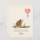 Cottagecore woodland themed valentine featuring illustration of mushrooms, hedgehog, and pink heart shaped balloon.