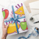 A cute hedgehog an a red green apple. This design looks really effective on these Wrapping Paper