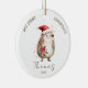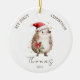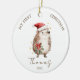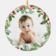 This design features a watercolor illustration of cute hedgehog in Santa hat. On the reverse side - holly wreath and your baby's photo.