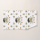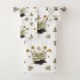 Hedgehog Botanical Woodland Pattern bathroom towel set. This sweet pattern shows a hedgehog family with a little whimsical touch as each is adorned with a flower crown. The regal family is sheltered amongst beautiful yellow flowers and leaves. Perfect for your cottage-core decor!