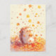This heartwarming design features an incredibly sweet and round hedgehog shown resting joyfully amidst a flurry of falling autumn foliage. Created as a high-quality digital illustration in a soft watercolor style, the hedgehog has fuzzy white and brown-tipped quills, rosy cheeks, and a blissful, smiling expression with its eyes closed in pure contentment. The character is nestled comfortably in a thick carpet of hand-painted red, orange, and yellow maple leaves, delicately holding a tiny yellow leaf between its tiny paws. Above the happy animal, a shower of delicate leaves drifts gracefully through a warm, sun-drenched off-white background, creating a sense of playful autumn magic. The overall aesthetic is bright, cozy, and full of whimsical wonder, making it an irresistible choice for fans of woodland creatures and cheerful fall art. This cheerful hedgehog postcard is a wonderful choice for sending a warm "thinking of you" note or a cozy autumn greeting to a friend who finds joy in the quiet magic of the season. You might choose to use this artistic card for a fall-themed "save the date" or as a sweet way to share news of a cozy seasonal harvest festival with your family. It also makes a precious decorative piece for a child's nursery wall or a bright addition to a creative scrapbooking project as a small token of autumn happiness. This versatile design is also an excellent choice for a holiday thank you note, a birthday message, or as a heartwarming way to share a message of joy for any situation or event.