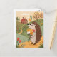 A funny folk art style illustration of a hedgehog with a bunch of flowers, the perfect postcard for birthday and other congratulations to show your love to a animal lover.