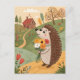 Hedgehog with flowers folk art postcard