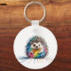 A friendly hedgehog in colorful colors, a childish drawing of a hedgehog, with shells and chalk, spiced and decorated is the colors as style and effect of the funny image. Text editable.