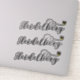 Scripted font design custom kiss-cut stickers (3 on a sheet).