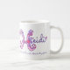Hand drawn letter H name and meaning mug. Pretty heart and flower capital H doodled typographic design featuring hearts and flowers and the words Heidi Noble kind. Honorable, blessed with perfection in pink and purple. © Unique art and design by Sarah Trett. www.sarahtrett.com for www.mylittleeden.com on zazzle
