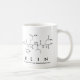 Hein spelled out in amino acids as H E I N (Histidine Glutamic acid Isoleucine Asparagine) on a mug for the scientist in you.