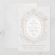 A romantic bridal shower invitation featuring an ornate rococo-inspired frame softened with delicate botanical detailing.