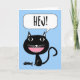 Hej! Hello Card in Swedish, Black Cat with Fish